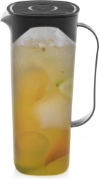 Praktyczny dzbanek z wysokiej jakości, lekkiego i wytrzymałego plastiku w czarnym wykończeniu sprawdzi się w domu, w ogrodzie i podczas przyjęć. Przezroczyste ścianki ułatwiają kontrolę poziomu oraz efektowną prezentację napojów z owocami lub ziołami. Dzięki kompaktowym wymiarom wygodnie mieści się w lodówce.
