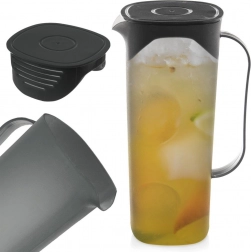 Elegancki plastikowy dzbanek z pokrywką o pojemności 1,8 l jest idealny do serwowania wody, lemoniady lub mrożonej herbaty. Ma wygodny uchwyt, profilowany dziobek do precyzyjnego nalewania oraz pokrywkę z sitkiem, która zatrzymuje lód i owoce, a jednocześnie chroni napój przed owadami. Lekki, wytrzymały i odpowiedni do zmywarki.