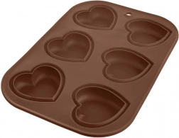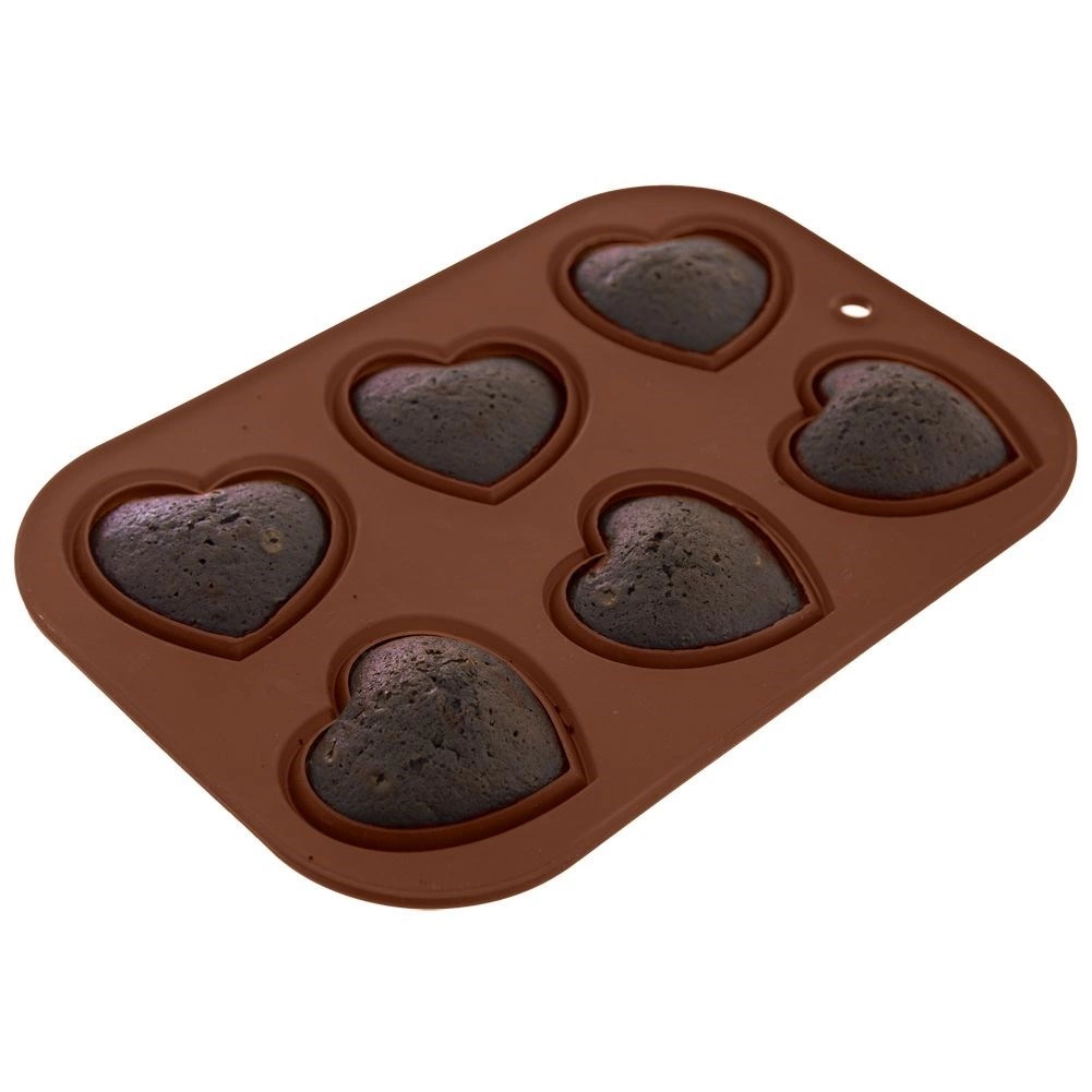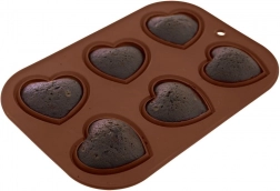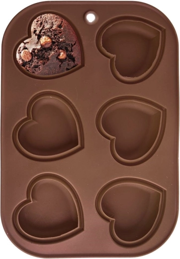 Ta prostokątna silikonowa forma w brązowym kolorze jest idealna do przygotowania muffinek w kształcie serca, deserów i czekoladek. Dzięki nieprzywierającej powierzchni nie ma potrzeby smarowania, ciasto się nie przypala, a gotowe wypieki łatwo wyjmiesz.