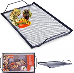 Praktyczne boczne uchwyty ułatwiają manipulację i przenoszenie z grilla prosto na stół (używaj rękawic ochronnych). Perforacja umożliwia równomierne dopiekanie, delikatne duszenie oraz uzyskanie dymnego aromatu warzyw, mięsa i ryb.