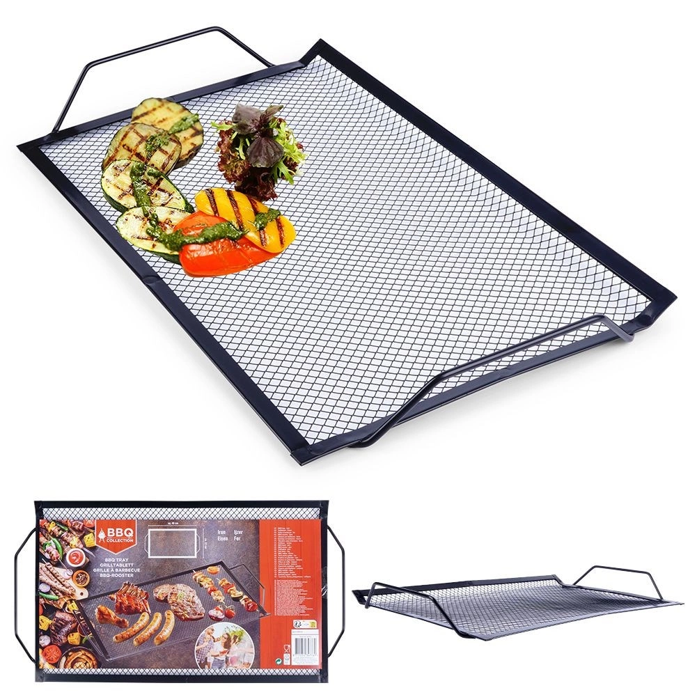 Ta uniwersalna misa/tacka do grillowania z drobną perforacją sprawi, że nawet małe składniki pozostaną bezpiecznie na miejscu. Dzięki powłoce nieprzywierającej jedzenie się nie przypala, a czyszczenie jest szybkie i łatwe. Solidna konstrukcja w czarnym kolorze nadaje się na grill, do piekarnika oraz do użycia nad otwartym ogniem.