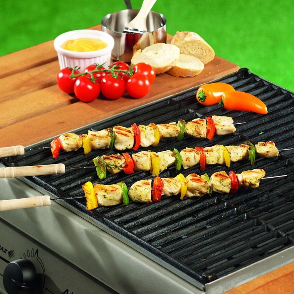 Kształt i zakończenie ograniczają zsuwanie się składników, dzięki czemu szaszłyki równomiernie się pieką i łatwo się obracają.