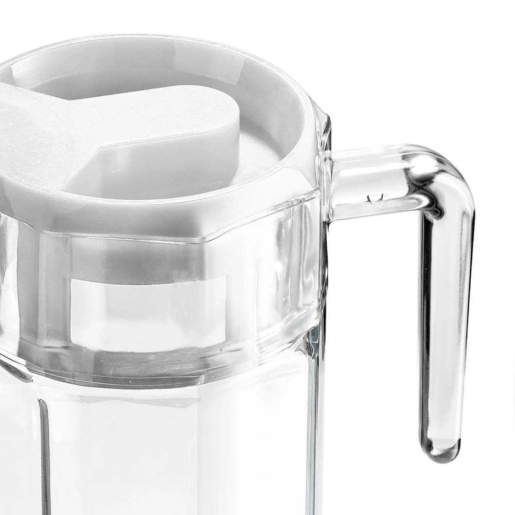 Praktyczna pokrywka z wytrzymałego plastiku chroni napój przed owadami i kurzem, a ergonomiczne ucho i wyprofilowany dziobek gwarantują wygodne i precyzyjne nalewanie bez kapania. Dzbanek można myć w zmywarce i przechowywać w lodówce. Przeznaczony do napojów o temperaturze do 60 °C; bez pokrywki możliwe jest krótkie podgrzewanie w kuchence mikrofalowej do temperatury niższej niż 60 °C.