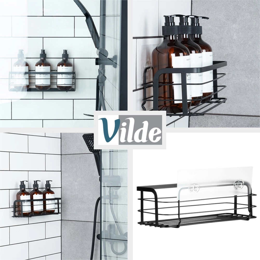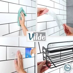 Uporządkuj łazienkę stylowo i bez wiercenia. Przyklejana półka Vilde w industrialnym stylu loft mocno trzyma się gładkich, odtłuszczonych powierzchni dzięki przezroczystej samoprzylepnej podkładce. Wymiary 31 × 12 × 9,5 cm zapewniają dużo miejsca na żele pod prysznic, szampony i gąbki, a podwyższona barierka zapobiega spadaniu przedmiotów.