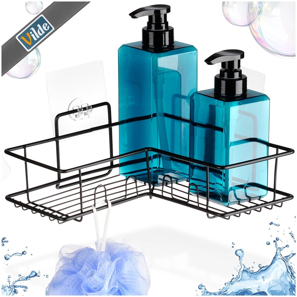 Narożna półka prysznicowa Vilde efektywnie wykorzystuje miejsce w rogu i utrzymuje Twoje szampony, mydła oraz gąbki zawsze pod ręką. Metalowa konstrukcja z czarną powłoką proszkową jest odporna na korozję i świetnie pasuje do nowoczesnej łazienki. Otwarty, druciany design zapewnia szybkie odprowadzanie wody oraz czyste, higieniczne warunki.