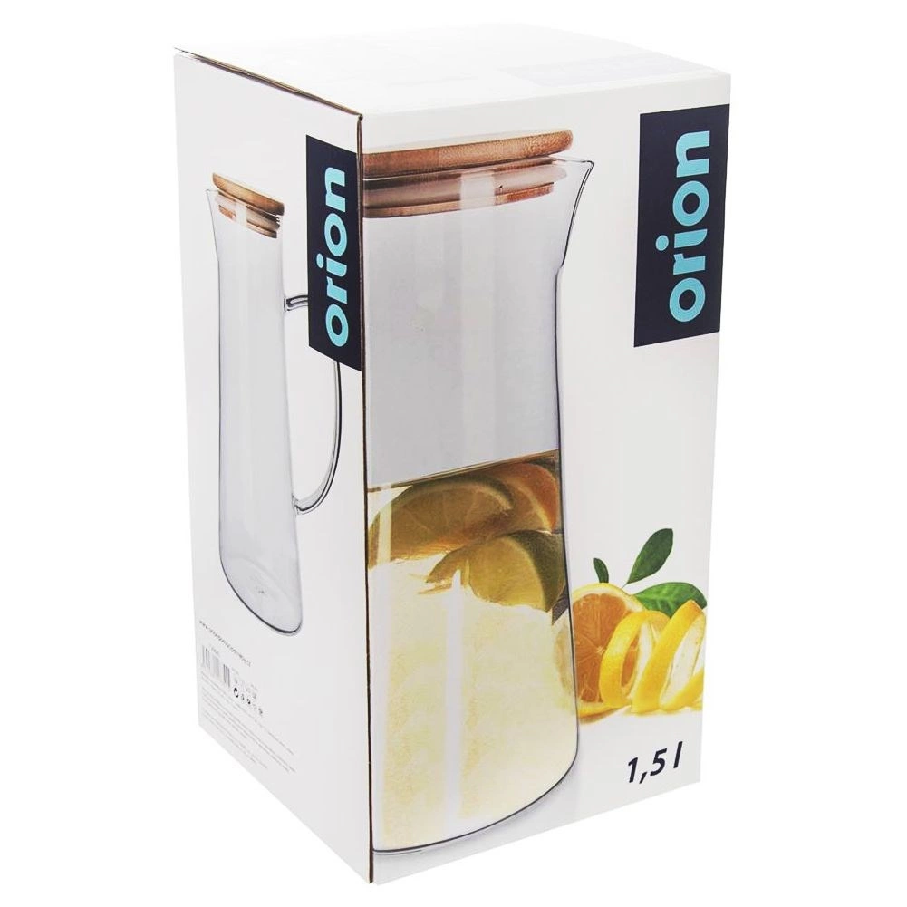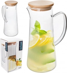 Stylowy dzbanek o pojemności 1,35 l wykonany jest z wytrzymałego szkła borokrzemowego, które wytrzymuje temperatury od 20 °C do 230 °C. Wyposażony w naturalną bambusową pokrywkę z silikonową uszczelką utrzymuje napoje dłużej świeże i chronione przed zanieczyszczeniami oraz owadami. Ergonomiczny uchwyt i profilowany dziobek gwarantują bezpieczne i precyzyjne nalewanie bez kapania.
