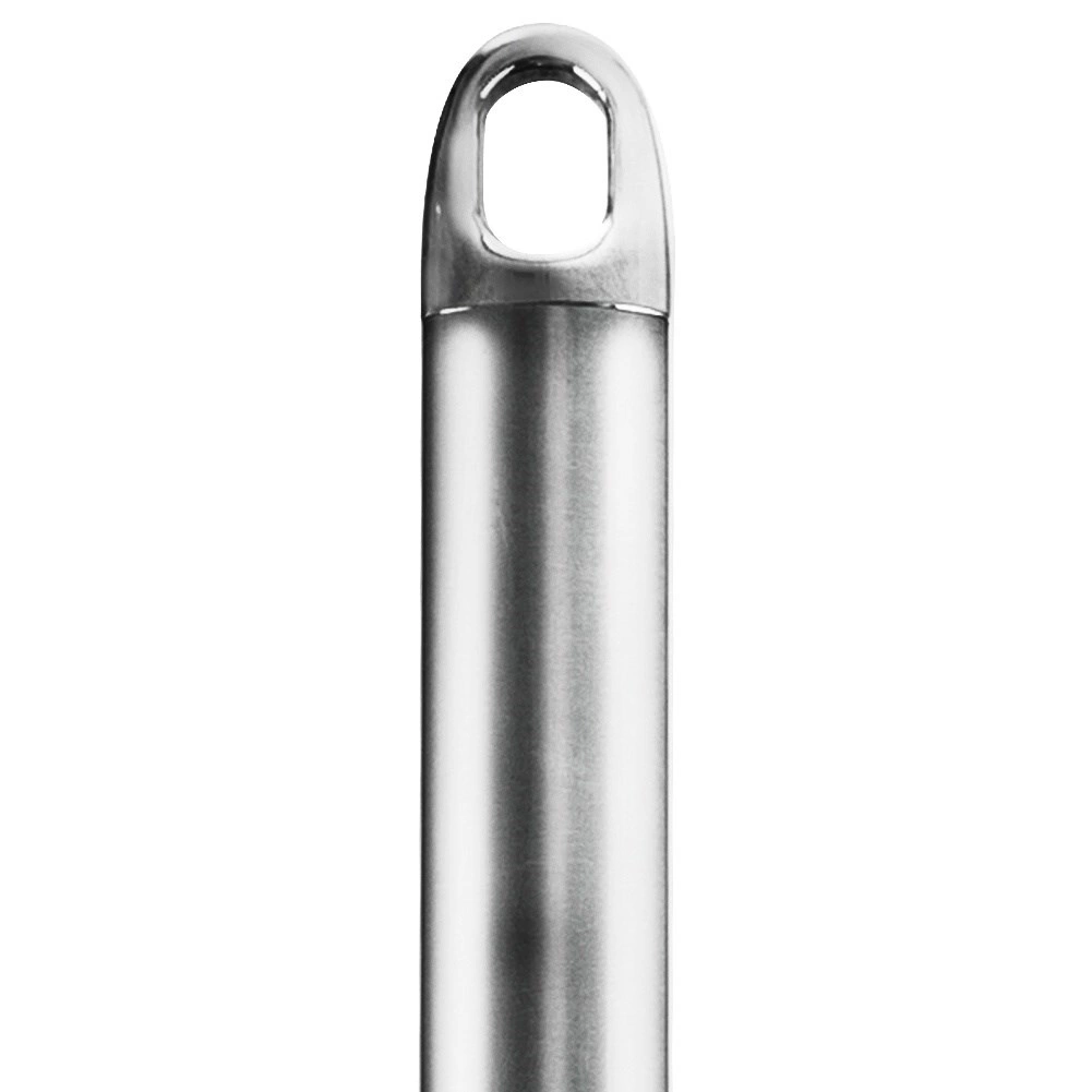 Ergonomiczna stalowa rączka zapewnia pewny chwyt, a dzięki otworowi łatwo zawiesisz ją na relingu lub haczyku.