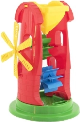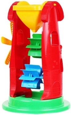 Zapewnia podwójne możliwości zabawy – dzieci mogą sypać piasek lub nalewać wodę i obserwować, jak kółka się kręcą.