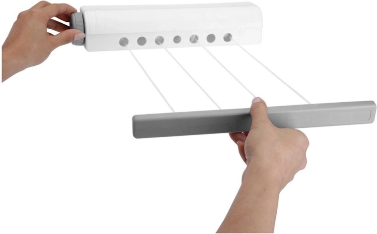 Instalacja jest szybka i prosta – wystarczy zamocować ją na przeciwległych ścianach w odległości do ok. 360 cm. Po złożeniu zajmuje minimum miejsca i zachowuje estetyczny wygląd wnętrza. Świetnie sprawdza się w łazience, pralni czy suszarni.