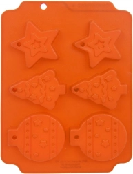 Świąteczna silikonowa forma umożliwia upieczenie do 6 smakołyków w kształcie gwiazdki, choinki i bombki. Jest elastyczna, nieprzywierająca i odporna na temperatury od -40 °C do +220 °C, dzięki czemu sprawdzi się w piekarniku, mikrofalówce i zamrażarce. Dzięki otworom gotowe ciasteczka można zawiesić na choince, a formę łatwo umyć również w zmywarce.