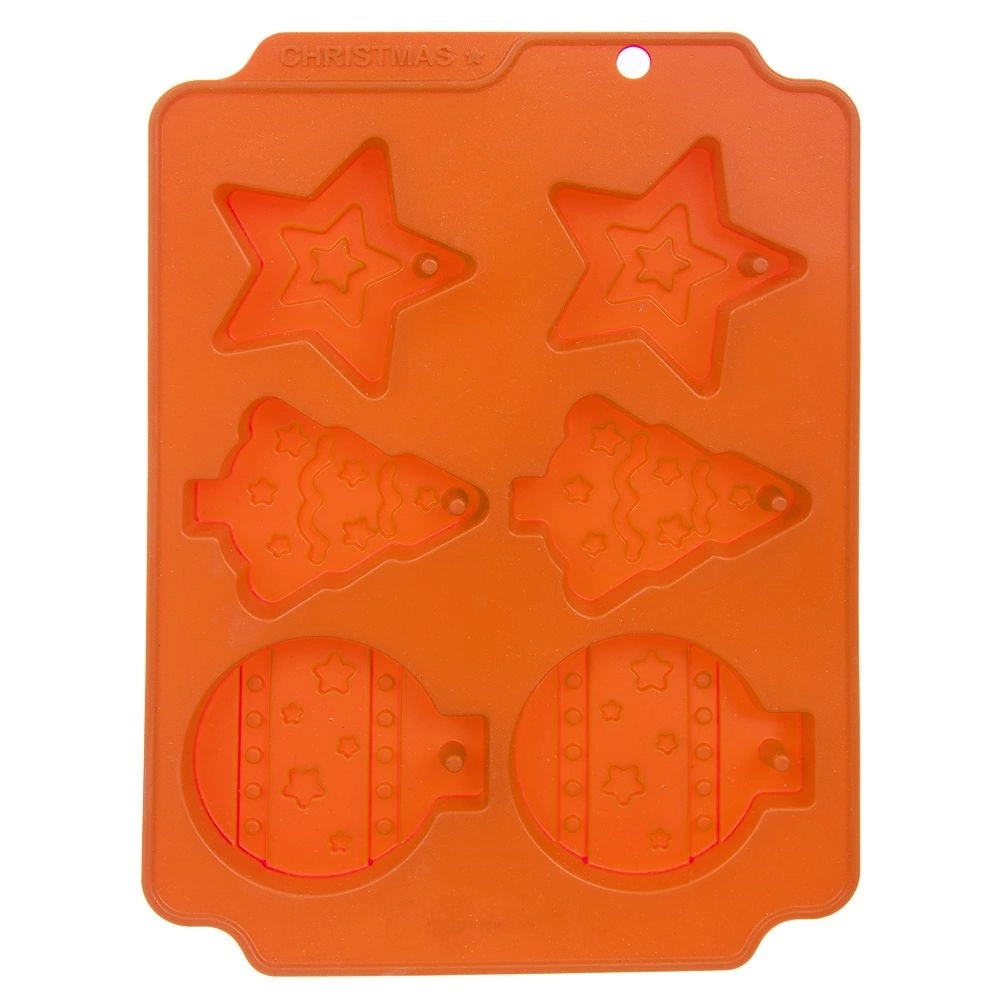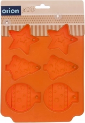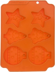 Sześć foremek w kształcie gwiazdki, choinki i bombki z dekoracyjnym reliefem dla doskonale odświętnego wyglądu.
