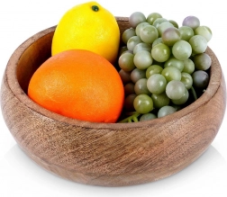 Stylowa drewniana miska z egzotycznego drewna mango o średnicy 18,5 cm i pojemności 900 ml jest idealna do serwowania przekąsek, owoców oraz dekoracyjnych aranżacji. Wyróżnia się naturalnym rysunkiem drewna, odpornością na wilgoć i uniwersalnym zastosowaniem w kuchni i jadalni. Świetny wybór do codziennego serwowania oraz jako elegancki dodatek do wnętrza.