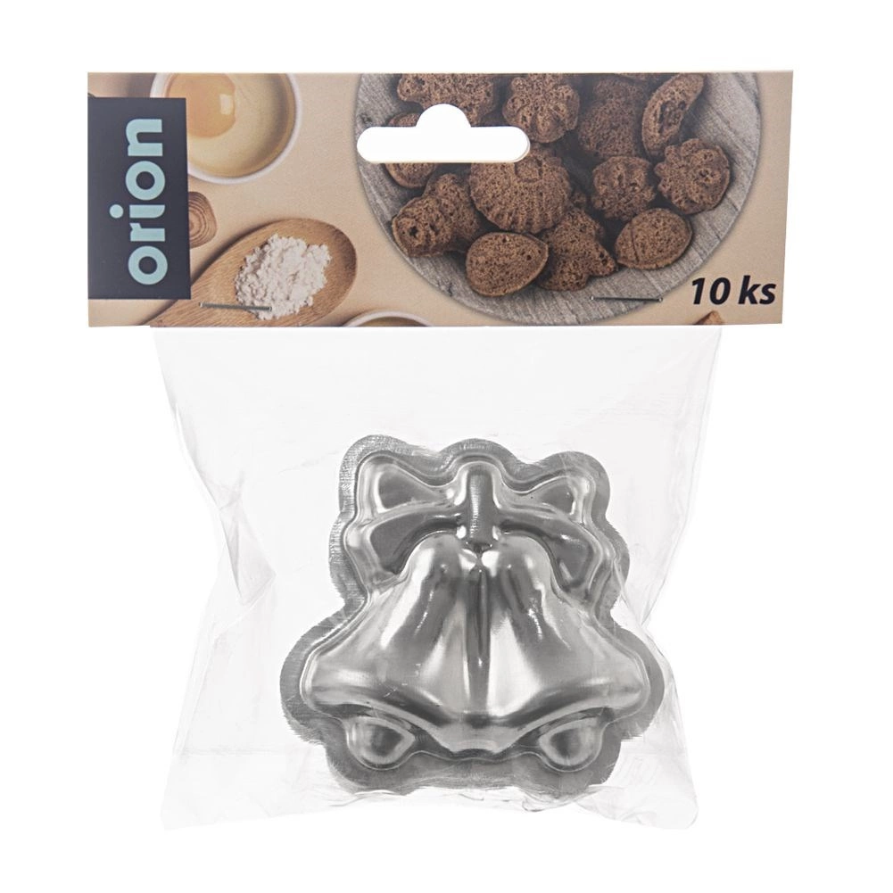 Praktyczny zestaw 10 wykrawaczek w kształcie dzwoneczków do pieczenia świątecznych ciasteczek, pierniczków oraz czekoladek. Z wysokiej jakości ocynkowanej blachy w srebrnym kolorze, trwałe i wytrzymałe, o wymiarach jednej foremki 6,5 × 7,5 × 2 cm. Idealne do świątecznego pieczenia i tworzenia efektownych dekoracji z mas cukierniczych.