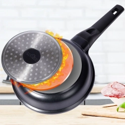 Patelnia jest kompatybilna ze wszystkimi rodzajami kuchenek – gaz, elektryczna, ceramiczna i indukcyjna. Równomierna dystrybucja ciepła na całej powierzchni zapobiega przypalaniu i gwarantuje perfekcyjne rezultaty. Ergonomiczny, nieprzegrzewający się uchwyt wygodnie leży w dłoni i ułatwia manipulację. W zestawie znajduje się także mata ochronna do bezpiecznego sztaplowania naczyń.