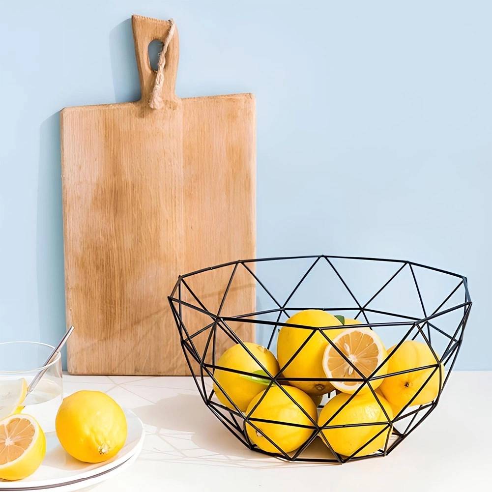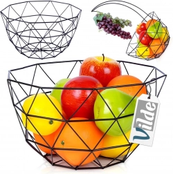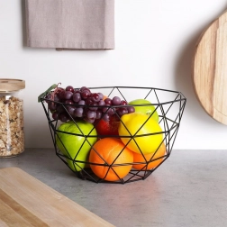 Otwarte druciane ścianki zapewniają optymalny przepływ powietrza, dzięki czemu owoce pozostają dłużej świeże. Matowe czarne wykończenie pasuje do wnętrz w stylu loft, industrial i modern. Koszyk można również wykorzystać do przechowywania pieczywa, przekąsek lub drobiazgów w domu.