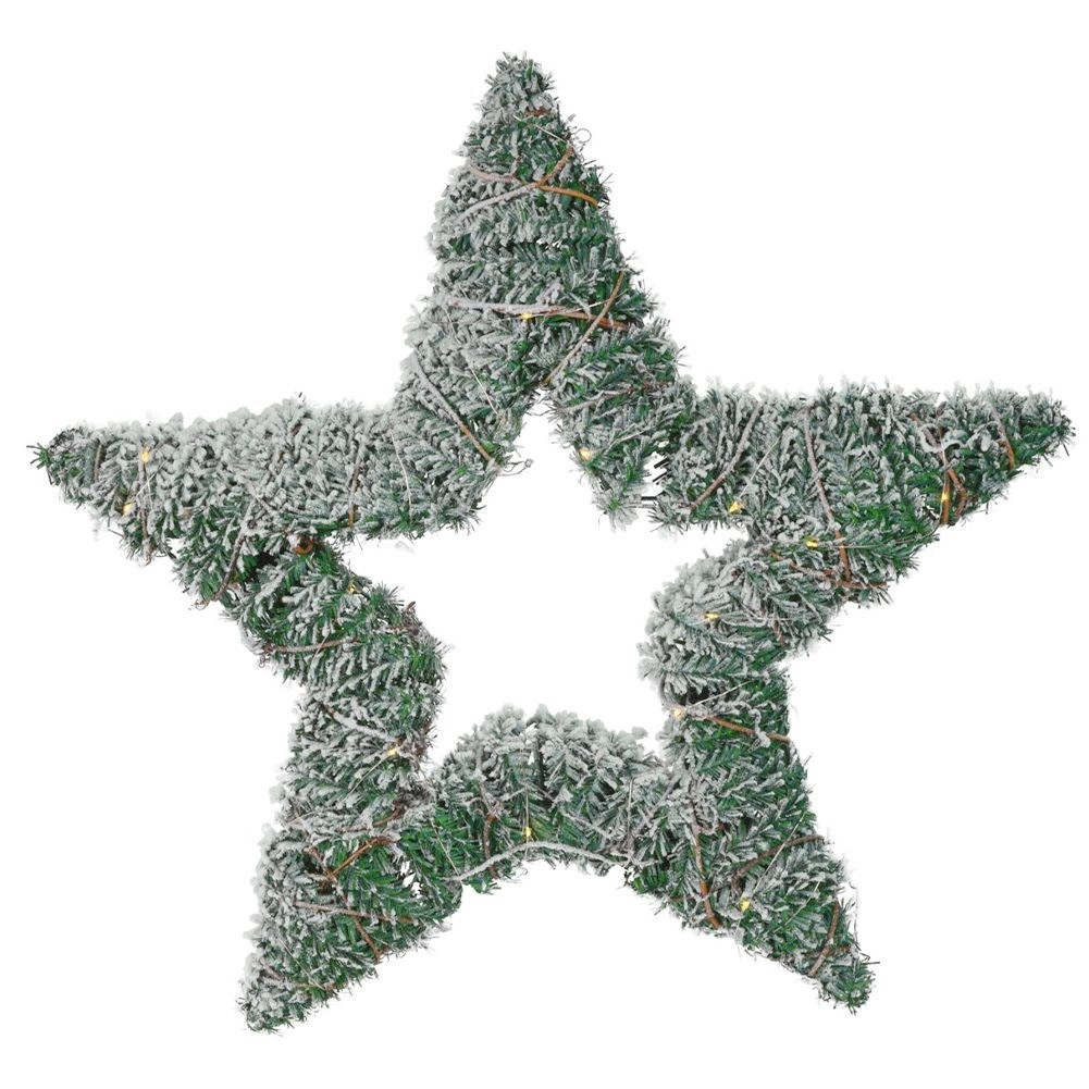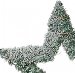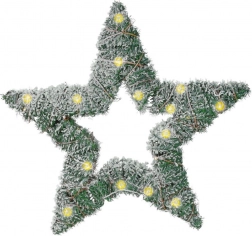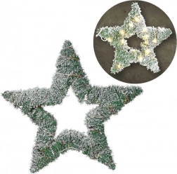 Zintegrowane 40 diod LED o ciepłobiałej barwie równomiernie podświetla kształt gwiazdy, a funkcja timera automatycznie wyłącza światła po 6 godzinach i ponownie włącza po 18 godzinach. Dekoracja jest przeznaczona do użytku wewnętrznego i świetnie sprawdzi się jako świąteczny wieniec na drzwi lub samodzielny element świetlny.