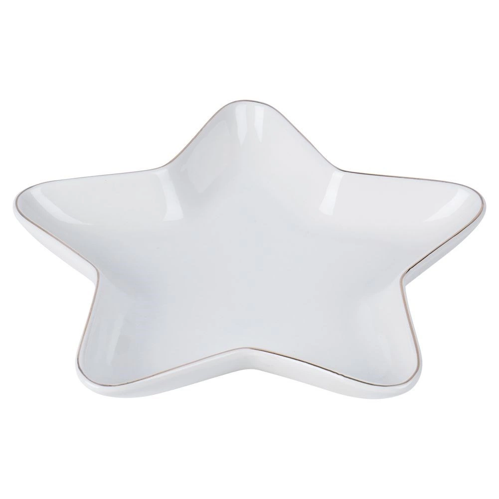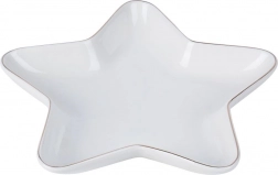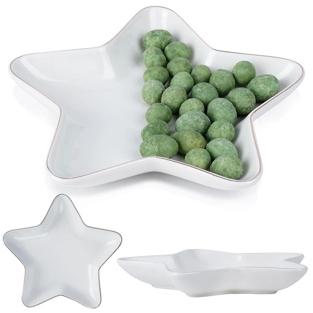 Stwórz na stole świąteczną atmosferę dzięki temu dekoracyjnemu talerzowi w kształcie gwiazdy. Wysokiej jakości biała porcelana i stonowany design podkreślą serwowanie ciasteczek, orzechów, kanapeczek oraz drobnych deserów. Talerz jest solidny, trwały i dzięki praktycznym wymiarom pasuje do każdego domu.