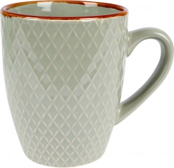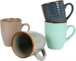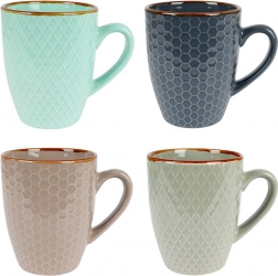 Każdy kubek zdobi wypukły geometryczny wzór oraz kontrastowy brązowy rant. Cztery atrakcyjne kolory dodadzą Twojej kuchni charakteru i łatwo je dopasujesz do pozostałej zastawy.