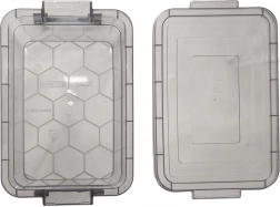- Przezroczysty, ciemnoszara pokrywka i klipsy