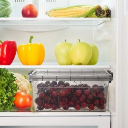 Przejrzyste ścianki pozwalają zajrzeć do środka na pierwszy rzut oka – idealne do lodówki, spiżarni i szuflad kuchennych.