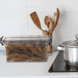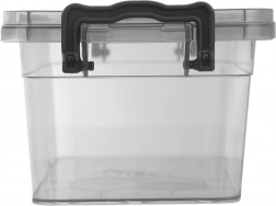 Dwa boczne zatrzaski mocno blokują pokrywkę, zawartość jest chroniona przed wilgocią i zabrudzeniami, a pudełko łatwo przenosić.
