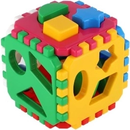 Klasyczna kostka do sortowania dla najmłodszych rozwija małą motorykę, logiczne myślenie oraz rozpoznawanie kształtów i kolorów. Kolorowe elementy wkłada się w odpowiadające im otwory, a poszczególne ścianki kostki są łączone zębatymi krawędziami dla łatwego składania. Idealna zabawka dydaktyczna dla dzieci od 12 miesięcy.
