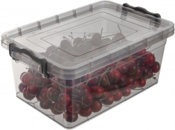 Praktyczny pojemnik o pojemności 5 litrów świetnie sprawdzi się do przejrzystego przechowywania owoców, warzyw, produktów sypkich, a także drobiazgów w domu, biurze czy warsztacie. Dwa boczne zatrzaski utrzymują pokrywkę pewnie na miejscu, dzięki czemu zawartość jest chroniona przed wilgocią i kurzem. Dzięki przezroczystemu korpusowi od razu widać, co jest w środku.