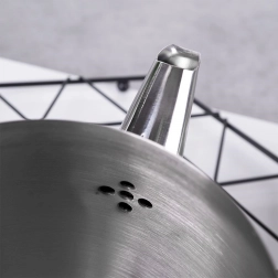 Czajnik jest uniwersalny – nadaje się na wszystkie typy płyt grzewczych, w tym indukcyjne. Zdejmowana pokrywka ułatwia nalewanie wody i czyszczenie, a ergonomiczny uchwyt zapewnia komfortowe przenoszenie. Może służyć również jako elegancki serwujący dzbanek do napojów gorących i zimnych.