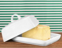 Uniwersalny design świetnie pasuje do każdego nakrycia stołu, a powierzchnia z błyszczącą glazurą jest łatwa w utrzymaniu. Maselniczka wykonana jest z bezpiecznej dla zdrowia ceramiki i nadaje się do zmywarki, co oszczędza czas i wysiłek.