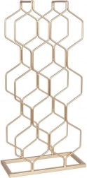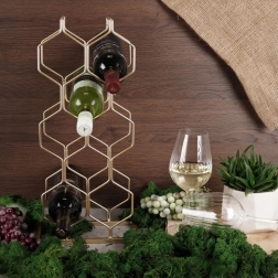 Otwarta heksagonalna konstrukcja w złotym kolorze jest jednocześnie funkcjonalna i dekoracyjna – zamieni Twoją kolekcję win w designerską dominantę kuchni lub salonu.