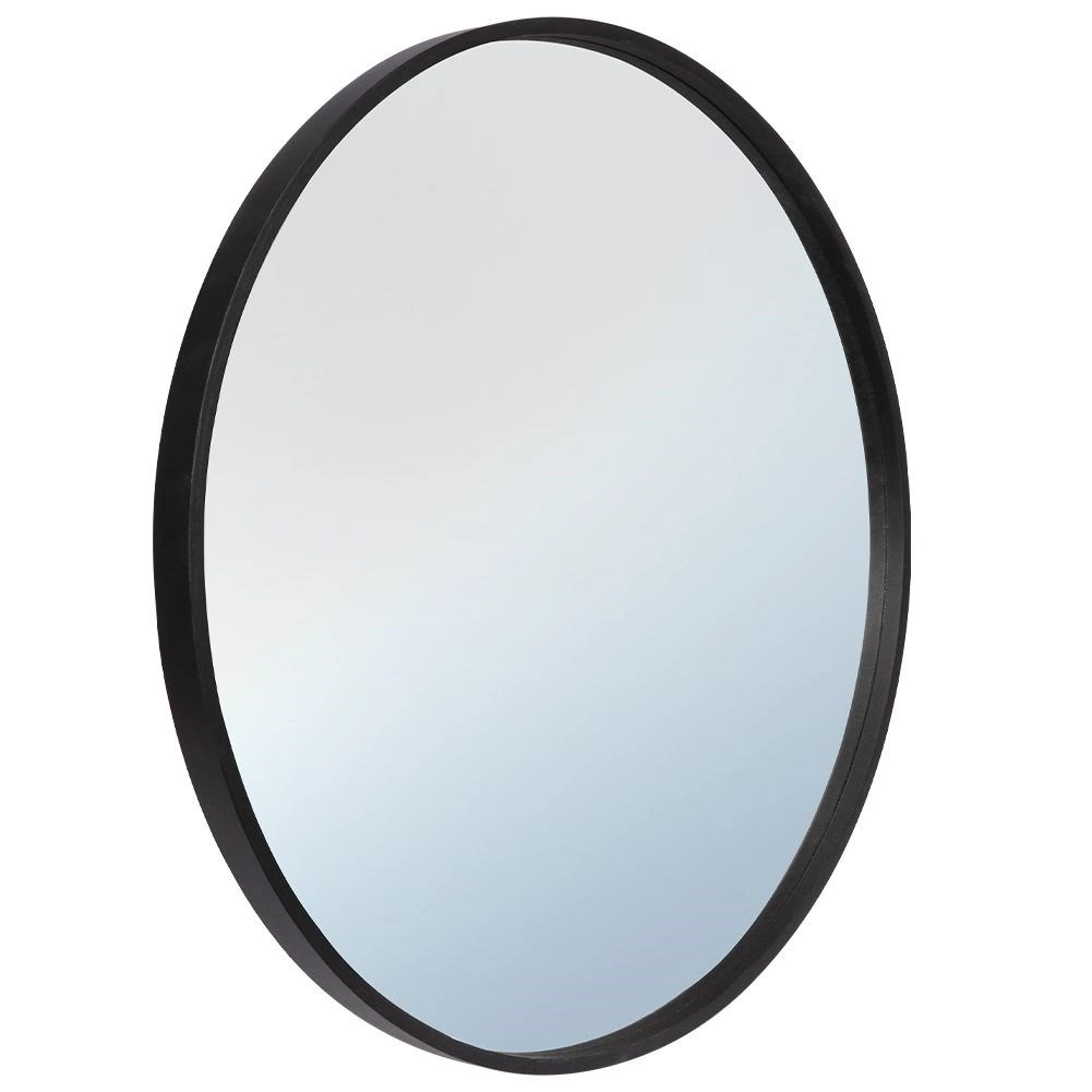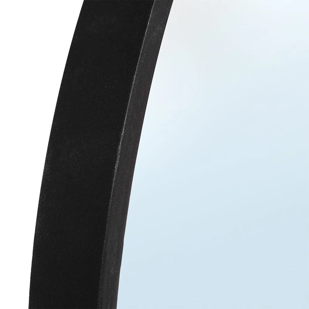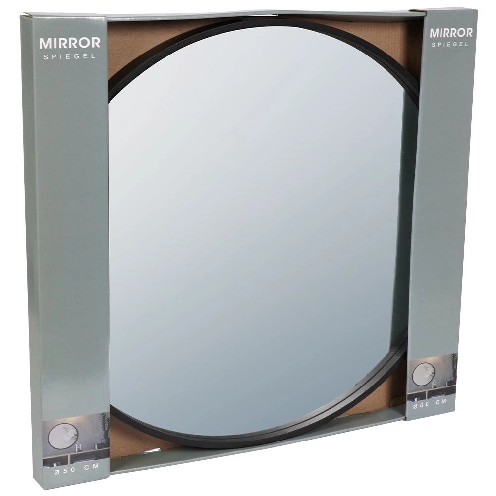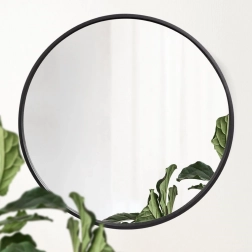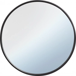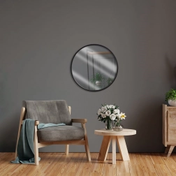 Okrągły kształt i cienka czarna rama tworzą nowoczesny akcent, który optycznie powiększa i rozjaśnia pomieszczenie.