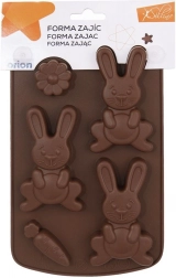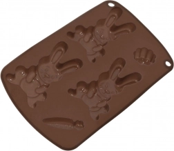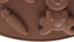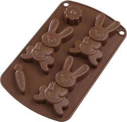Silikonowa forma z motywami króliczków, marchewki i kwiatka do łatwego przygotowania pralin, czekoladek i ciasteczek. Jest odporna od -40 °C do +220 °C, odpowiednia do piekarnika, mikrofalówki i zamrażarki oraz można ją myć w zmywarce. Dzięki nieprzywierającej powierzchni gotowe kształty łatwo wyjmiesz, a forma łatwo się czyści.