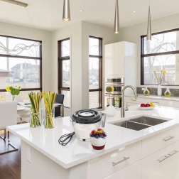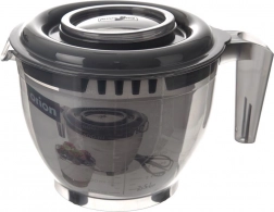Wyjmowana środkowa część pokrywki pozwala włożyć końcówki miksera i jednocześnie zapobiega rozpryskiwaniu składników po kuchni.