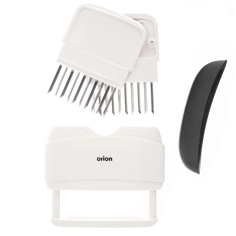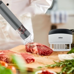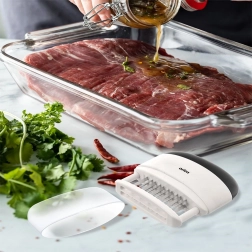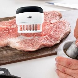 Kompaktowe narzędzie kuchenne ma ergonomiczny uchwyt dla wygodnego chwytu oraz zdejmowaną osłonę bezpieczeństwa do bezpiecznego przechowywania. Korpus wykonany z wysokiej jakości plastiku, igły ze stali nierdzewnej dopuszczonej do kontaktu z żywnością. Wystarczy przyłożyć do mięsa i nacisnąć – szybko, czysto i skutecznie.