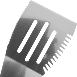 Trzy podłużne wycięcia skutecznie odprowadzają tłuszcz i soki, co ułatwia manipulację jedzeniem i zmniejsza bałagan na ruszcie.