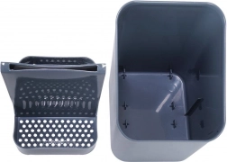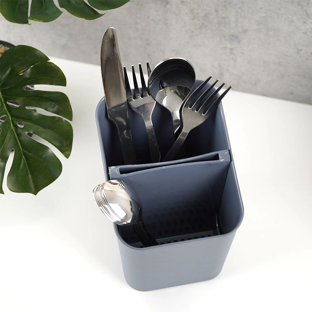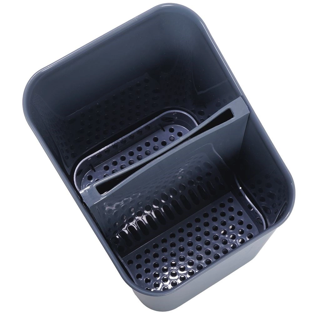 Utrzymuj zlew i blat kuchenny w porządku. Ten szary ociekacz na sztućce łączy wytrzymałe wykonanie z wysokiej jakości plastiku z przemyślanym wewnętrznym układem. Wyjmowany separator tworzy dwie praktyczne strefy, a dzięki otworom drenażowym woda spływa, więc sztućce nie stoją w wodzie i szybciej schną.