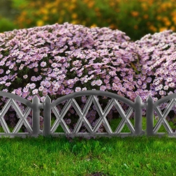 Udoskonal wygląd swojego ogrodu dzięki dekoracyjnemu płotkowi w eleganckim grafitowym odcieniu. Niski profil z łukowym i ażurowym wzorem efektownie obramowuje rabaty kwiatowe, trawnik i ścieżki, a jednocześnie utrzymuje czyste, równe krawędzie.