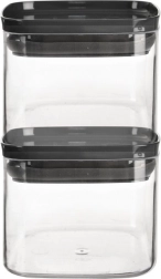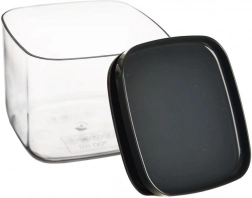 Kompaktowe wymiary 10,5 × 10,5 × 9 cm oraz możliwość ustawiania pojemników jeden na drugim optymalizują przestrzeń w szafkach i szufladach.
