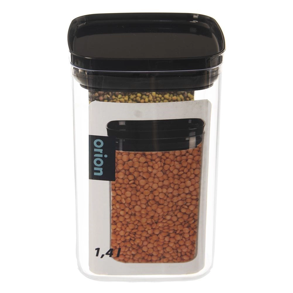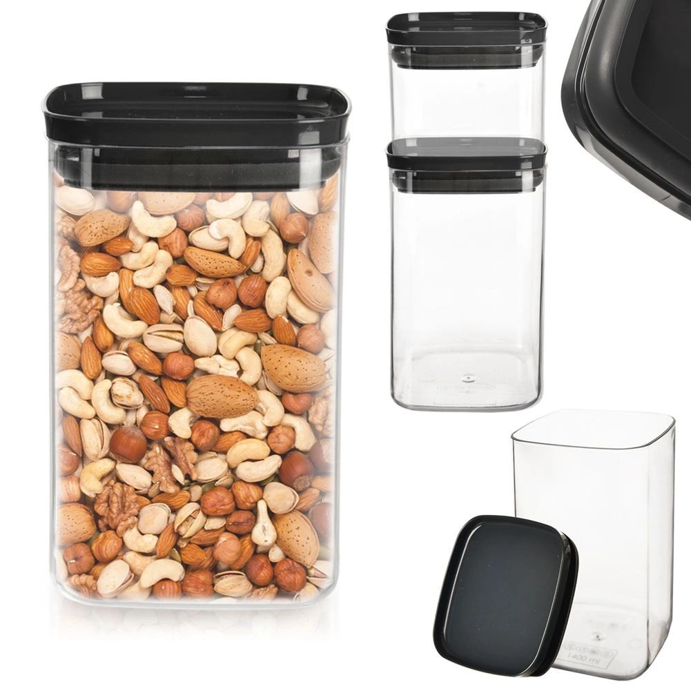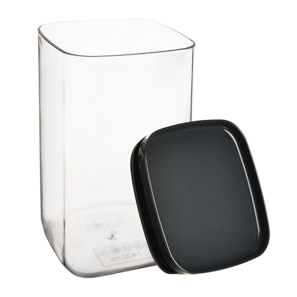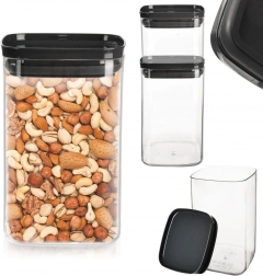 Czarna pokrywka z silikonową uszczelką niezawodnie zamyka pojemnik, chroni zawartość przed wilgocią i zachowuje aromat oraz chrupkość produktów.