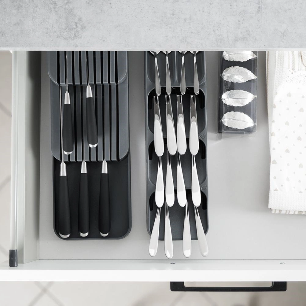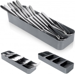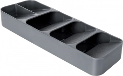 Trwałe wykonanie z wysokiej jakości plastiku w eleganckim szarym kolorze zapewnia łatwe czyszczenie i długą żywotność. Organizer idealnie nadaje się do przechowywania łyżek, widelców, noży oraz małych łyżeczek i widelczyków, a każdy element ma swoje miejsce.