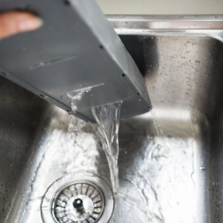 Gładki, solidny plastik w szarym kolorze jest łatwy w pielęgnacji i wytrzymuje codzienne użytkowanie.