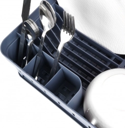 - Funkcjonalny podział: miejsca na talerze, kubki oraz 3 przegrody na sztućce.