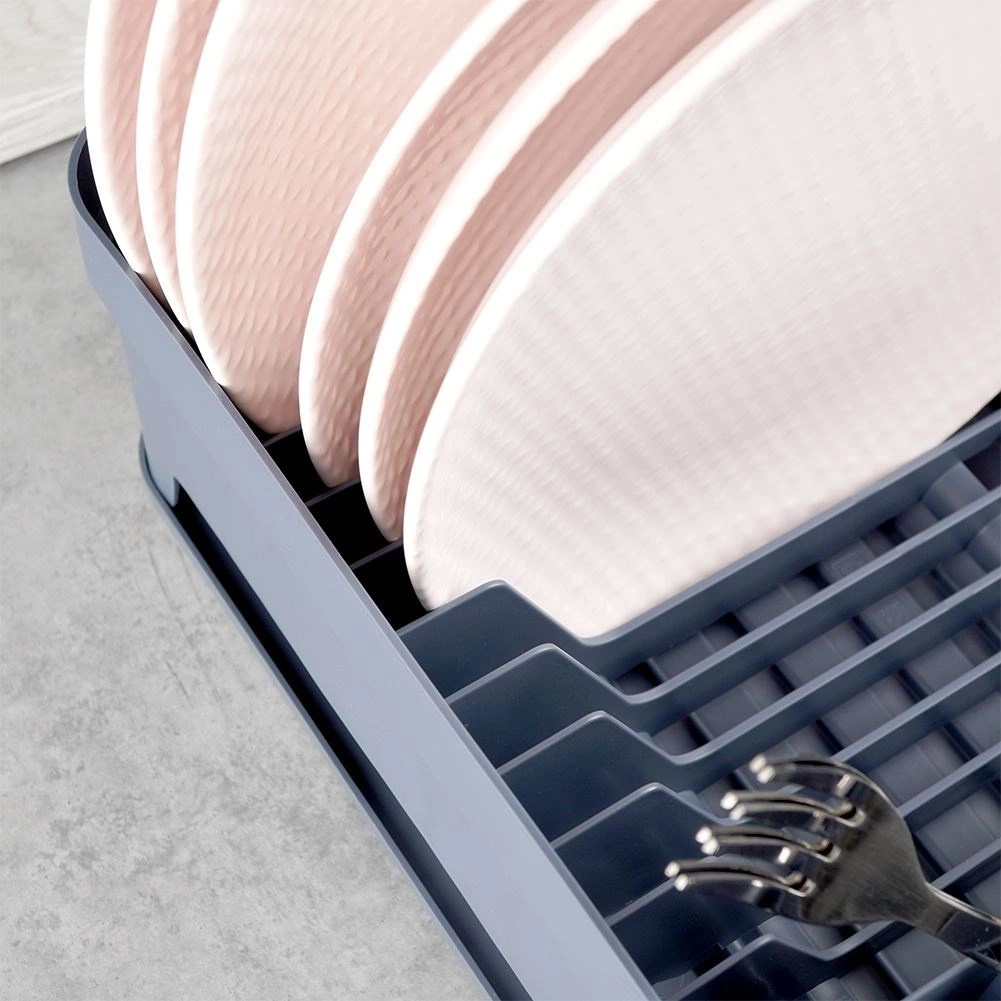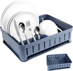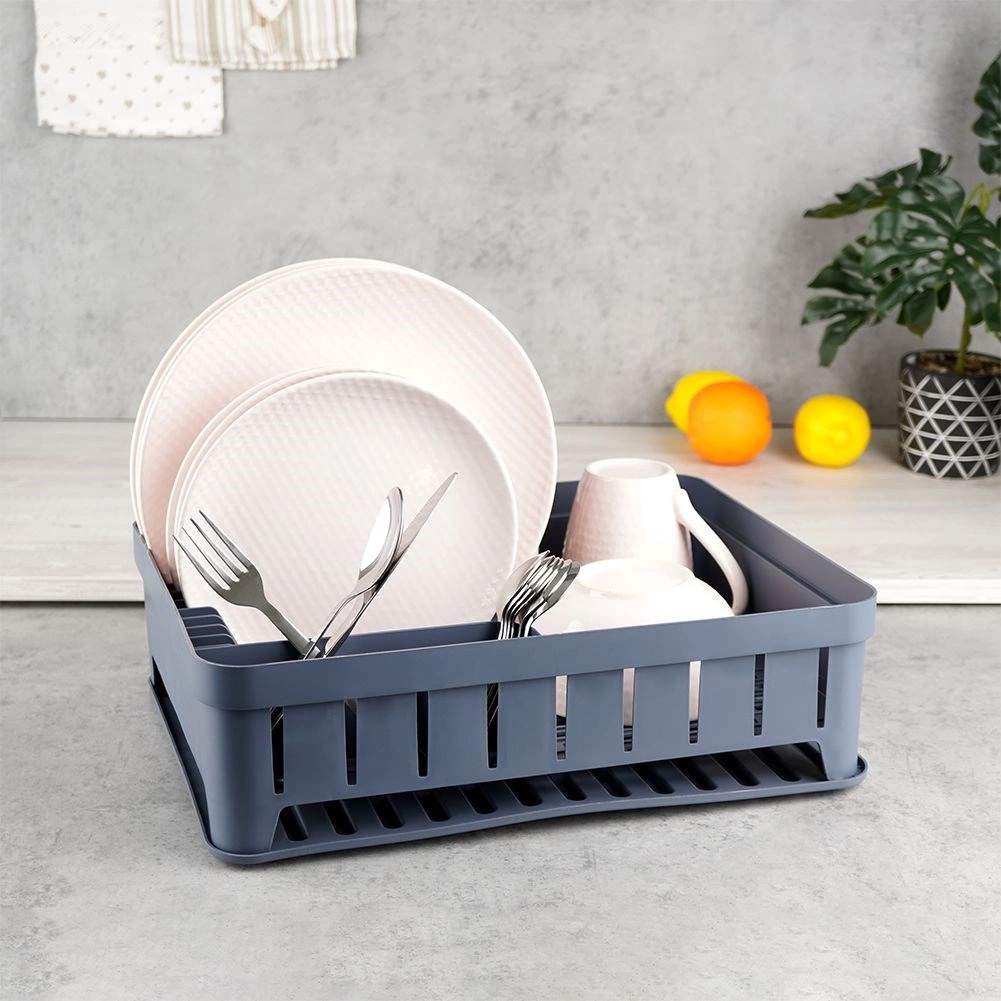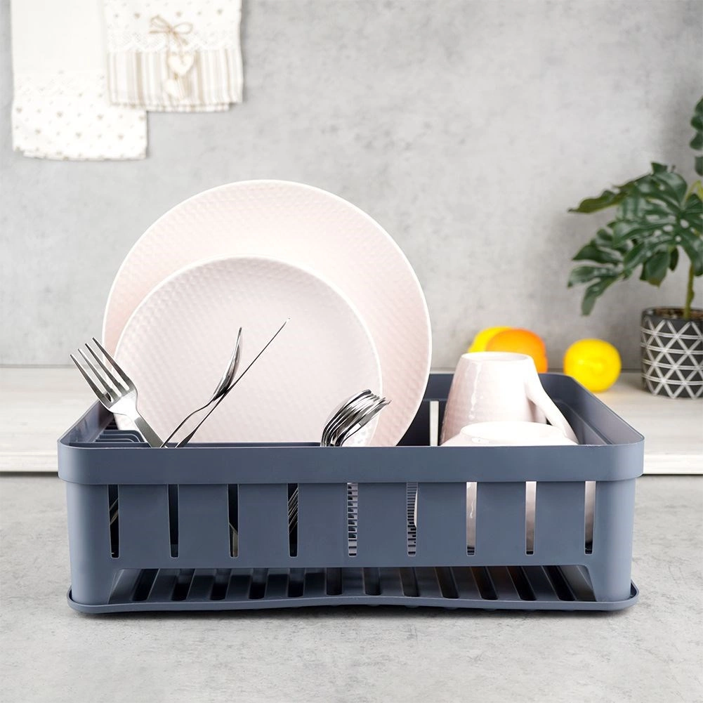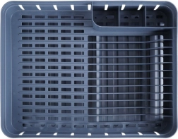 Szary ociekacz na naczynia został zaprojektowany z myślą o wygodnym i higienicznym suszeniu umytych talerzy, misek, kubków i sztućców. Pojemność do 11 talerzy, wydzielone miejsce na kubki oraz trójdzielne pudełko na sztućce pomogą utrzymać kuchnię w porządku i suchości. Wyjmowana gumowa tacka ociekowa niezawodnie zbiera nadmiar wody.