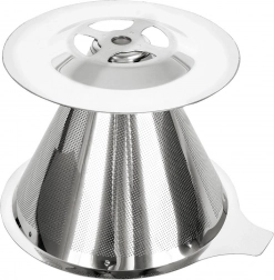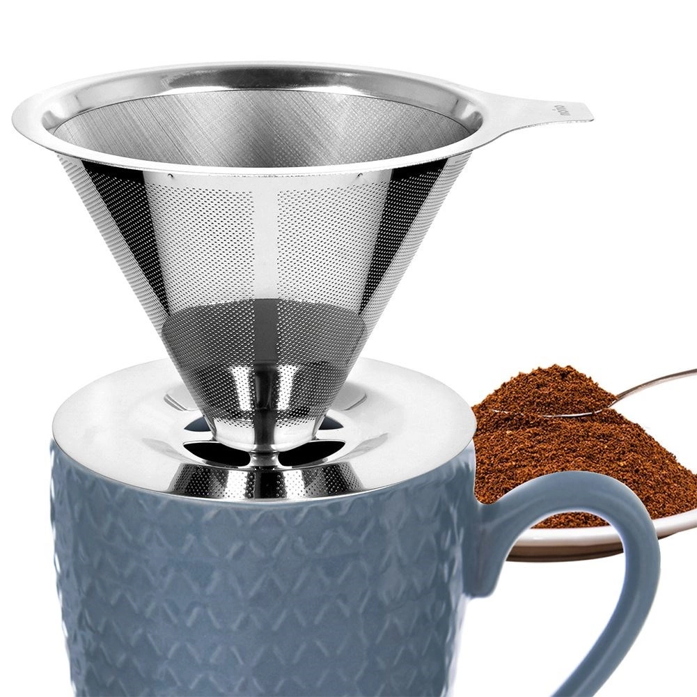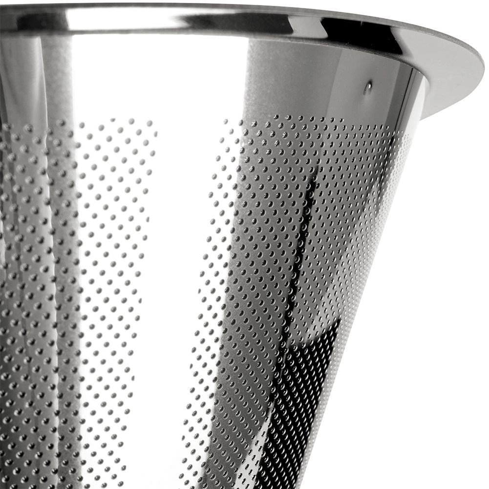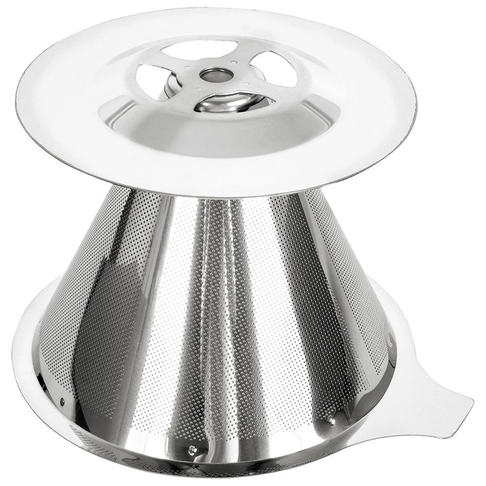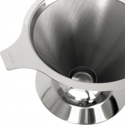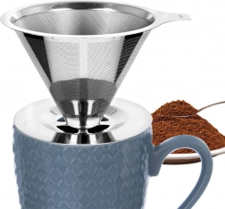 Praktyczny stalowy filtr do kawy przelewowej do parzenia aromatycznej kawy bezpośrednio do kubka. Jest wielokrotnego użytku, bez papierowych wkładek, z wysokiej jakości stali nierdzewnej i łatwo myje się w zmywarce. Stabilnie spoczywa na filiżankach o średnicy 6,5–9,5 cm i nie zaburza aromatu przygotowywanej kawy.