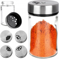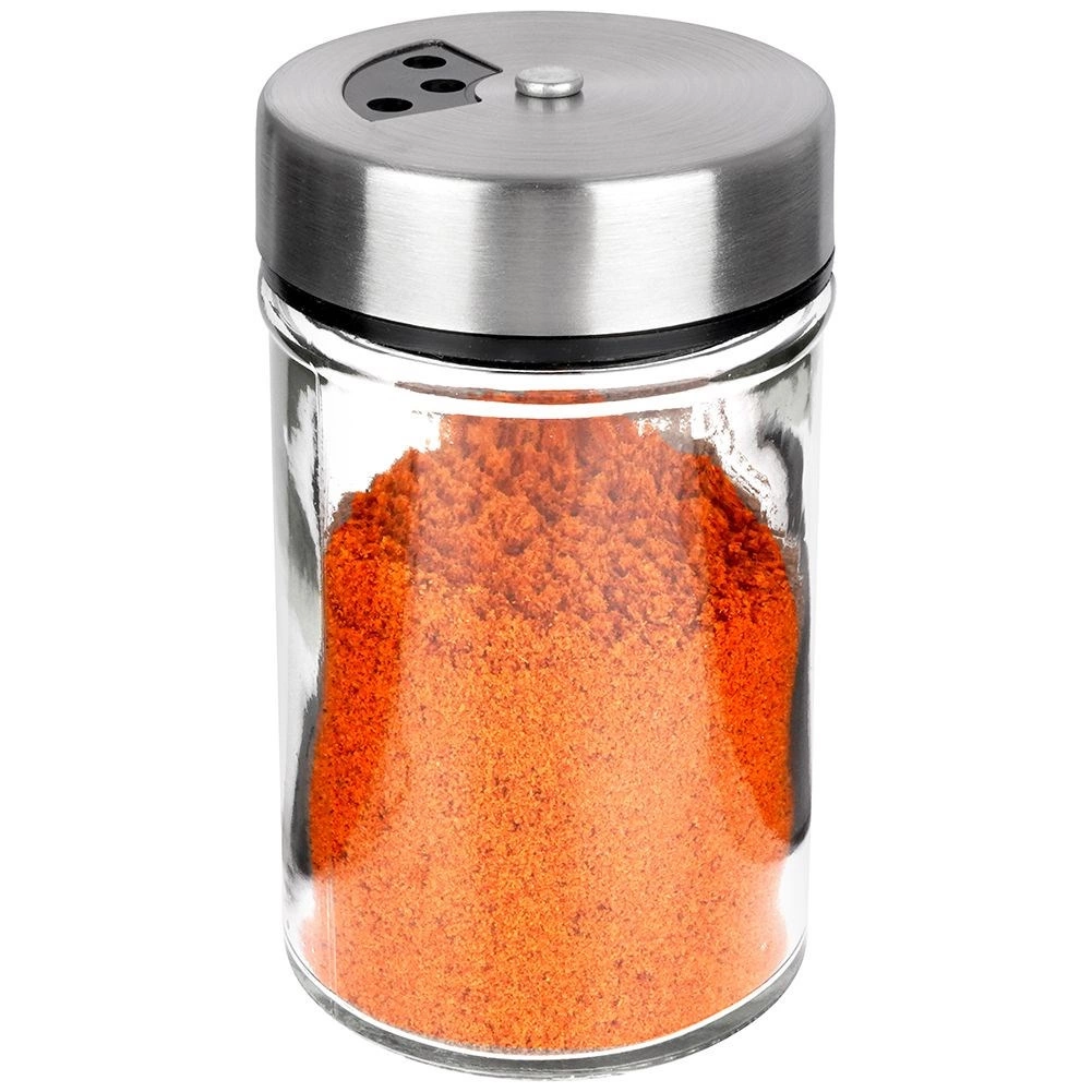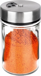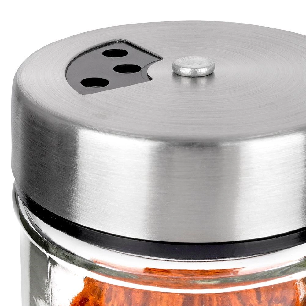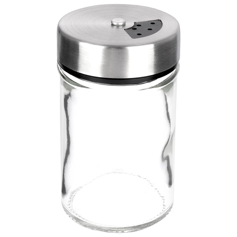 Elegancki pojemnik na przyprawy z przezroczystego szkła z wieczkiem ze stali nierdzewnej i plastikowym dozownikiem idealnie sprawdzi się w codziennym użytkowaniu w kuchni. Dzięki dwóm rozmiarom otworów łatwo dopasujesz drobne i grubsze dozowanie i zawsze wsypiesz dokładnie tyle, ile potrzebujesz. Zamykany mechanizm utrzymuje przyprawy dłużej aromatyczne i świeże.