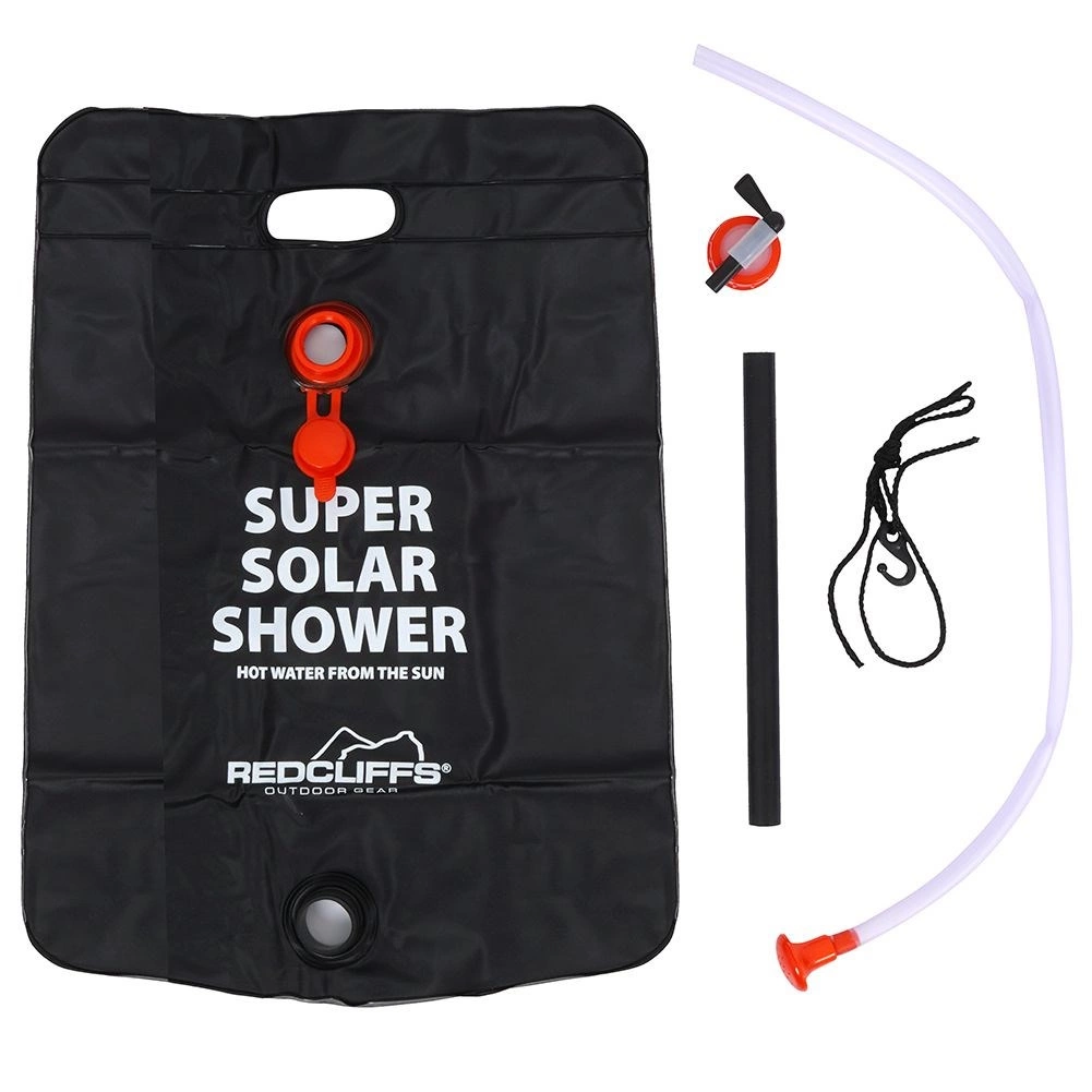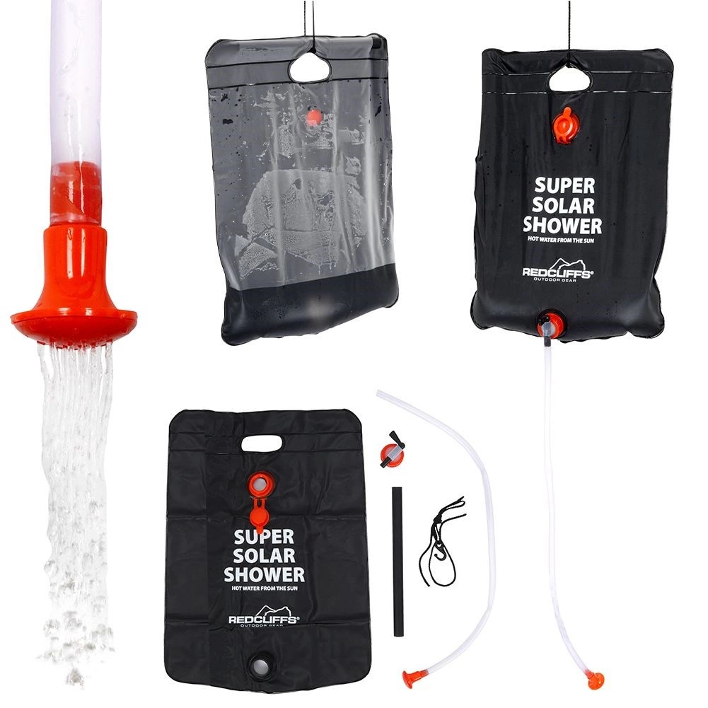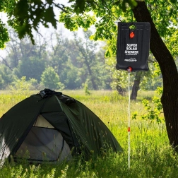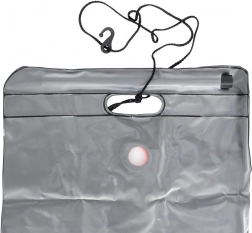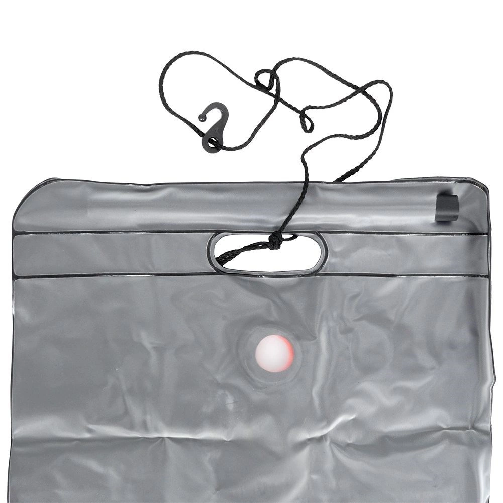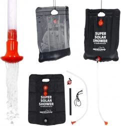 Wytrzymałe tworzywo PV gwarantuje długą żywotność i pewność podczas częstego używania w terenie. Wystarczy napełnić wodą, położyć na słońcu, a po kilku godzinach masz przygotowany ciepły prysznic do około 50 °C. Zintegrowany uchwyt, zawór i wąż prysznicowy uprzyjemnią codzienną higienę w podróży.