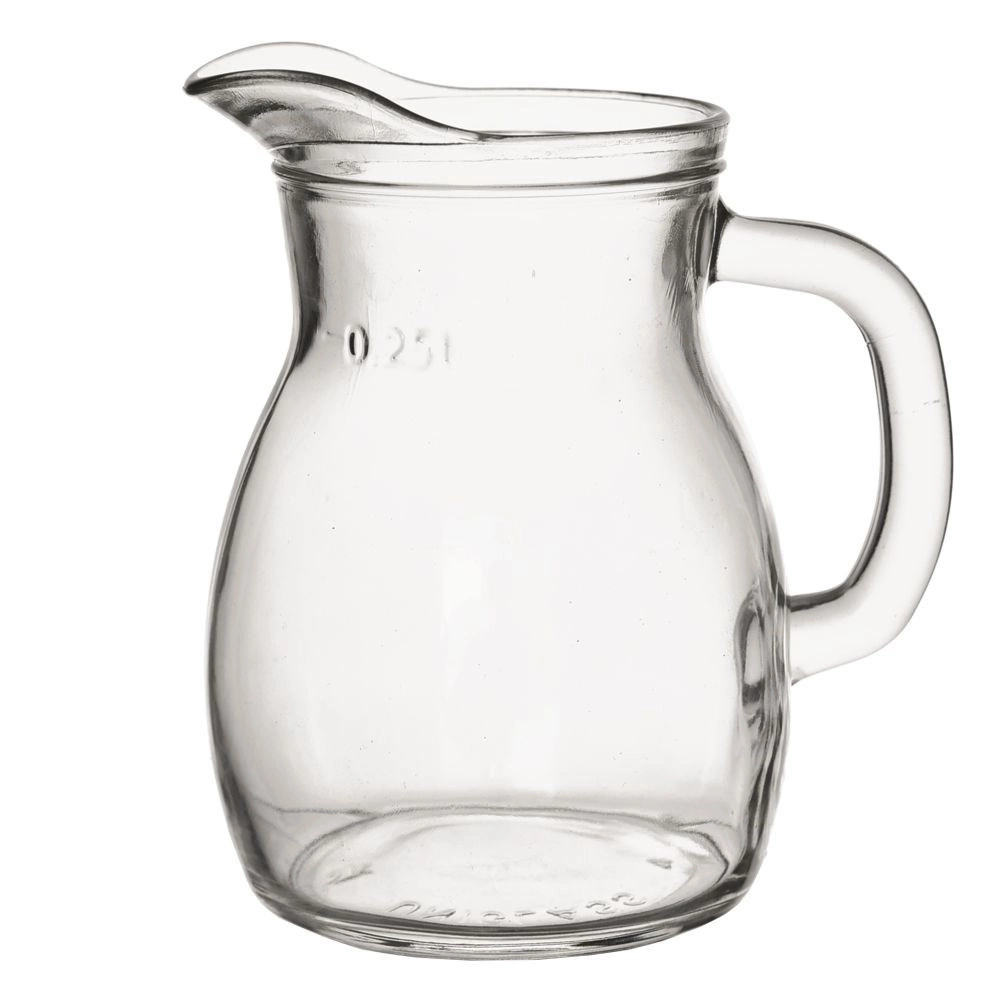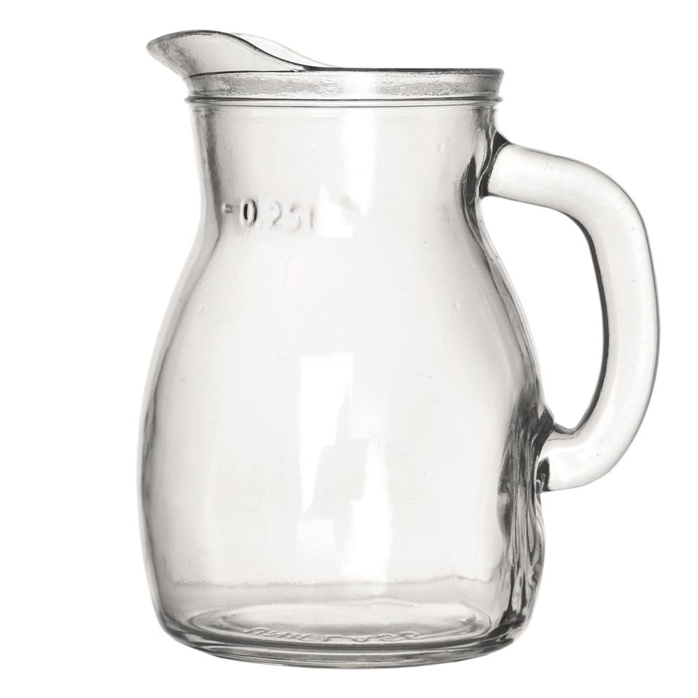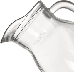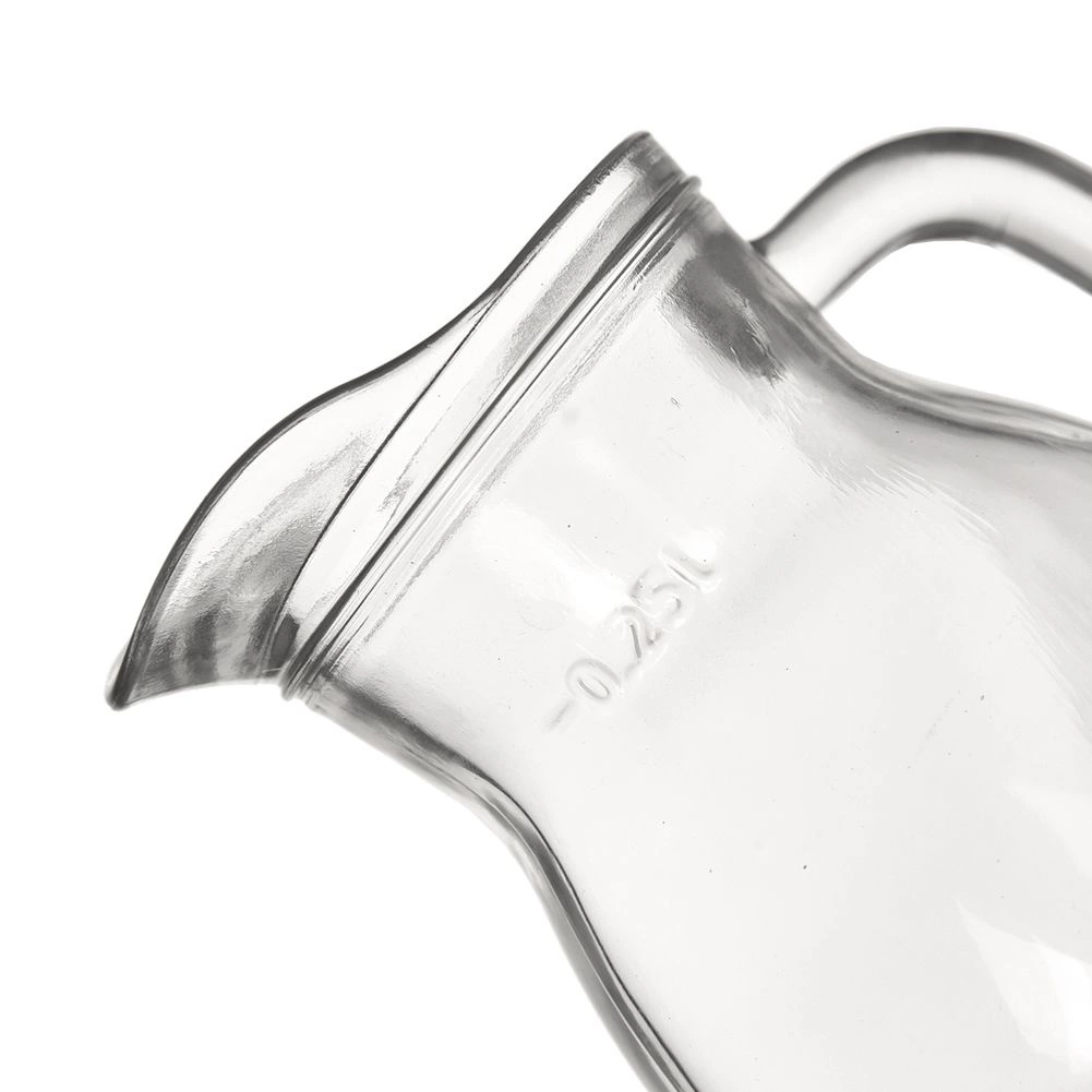 Uniwersalny szklany dzbanek doskonale sprawdzi się w kuchni i w gastronomii. Dzięki przezroczystemu wykonaniu elegancko wpasuje się w każde nakrycie stołu i umożliwi łatwą kontrolę ilości napoju. Praktyczne wyróżnienie 0,25 l ułatwia precyzyjne serwowanie.