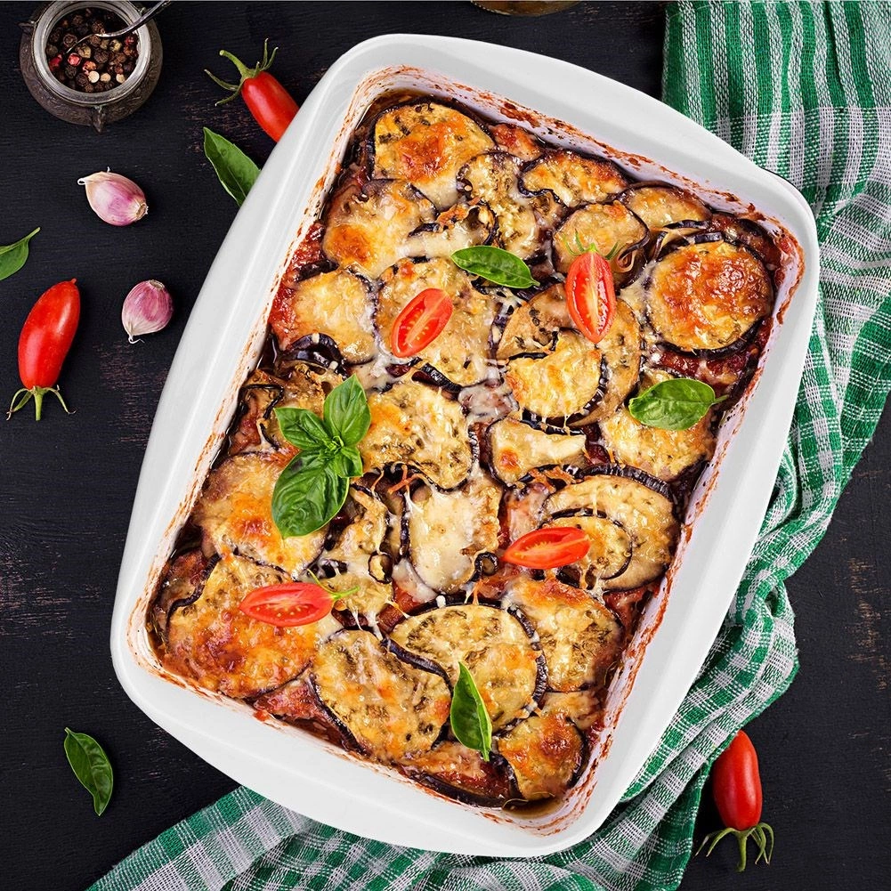 To prostokątne naczynie do zapiekania z wysokiej jakości porcelany jest idealne do dań słonych i słodkich – od lasagne, zapiekanych ziemniaków i warzyw po desery typu tiramisu. Dzięki równomiernemu rozprowadzaniu ciepła zapewnia perfekcyjnie upieczone potrawy, a gładkie szkliwione wnętrze ułatwia wyjmowanie oraz późniejsze czyszczenie.