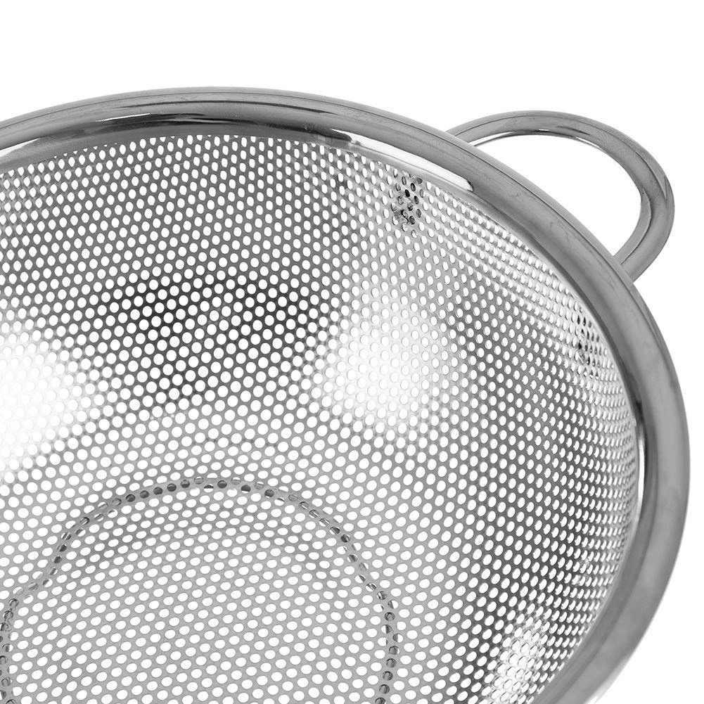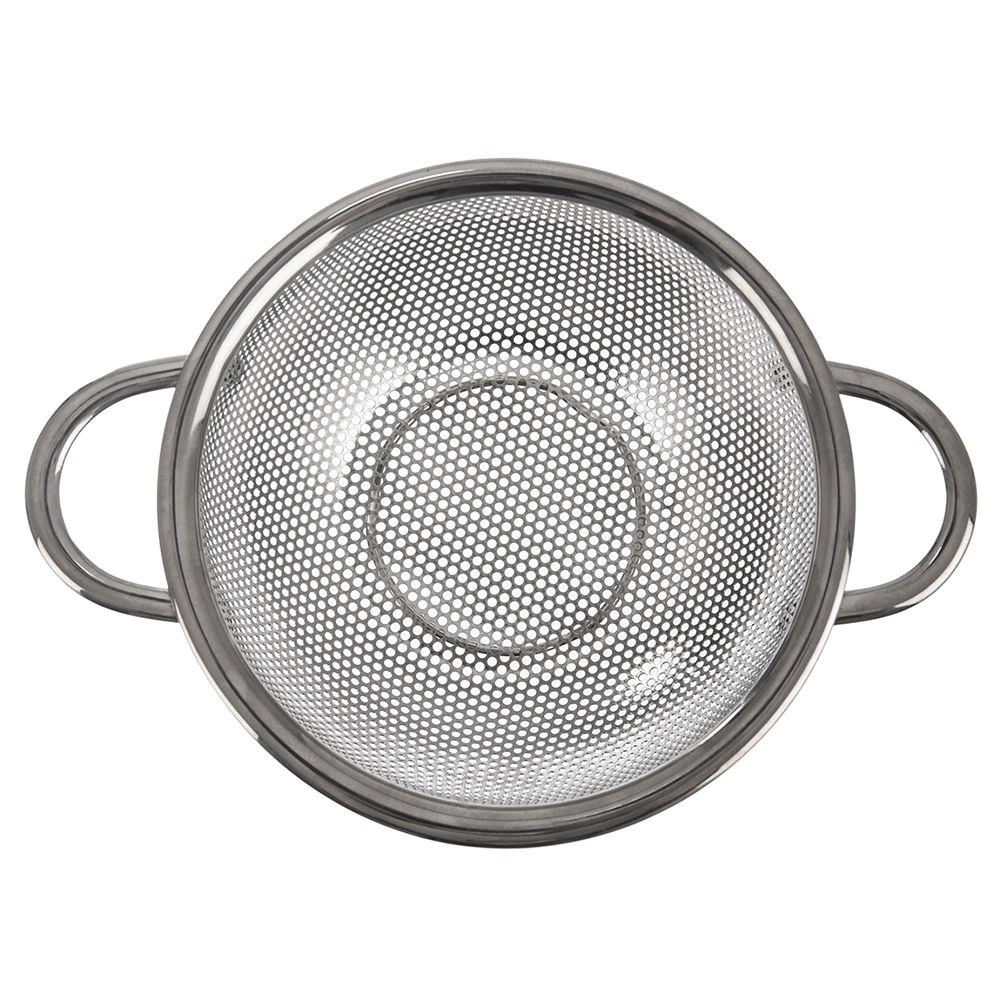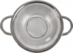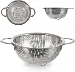 Uniwersalny durszlak ze stali nierdzewnej w kształcie miski o średnicy 16,5 cm i poszerzonym rancie 22,5 cm jest idealny do mycia owoców i warzyw, odcedzania makaronu oraz ryżu. Dzięki dwóm wygodnym uchwytom i stabilnej podstawie jest łatwy w obsłudze, trwały i nadaje się do zmywarki.