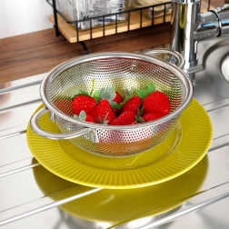 Gęsto rozmieszczone otwory na całej powierzchni zapewniają efektywne odprowadzanie wody podczas mycia owoców oraz odcedzania makaronu i warzyw.
